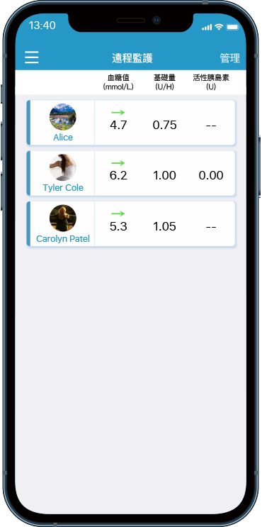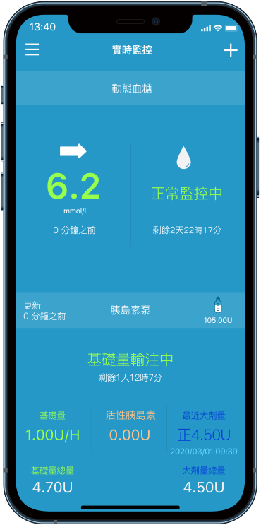數據每兩分鐘自動從 PDM(個人糖尿病管理系統)上傳至 App,實時更新無延遲。